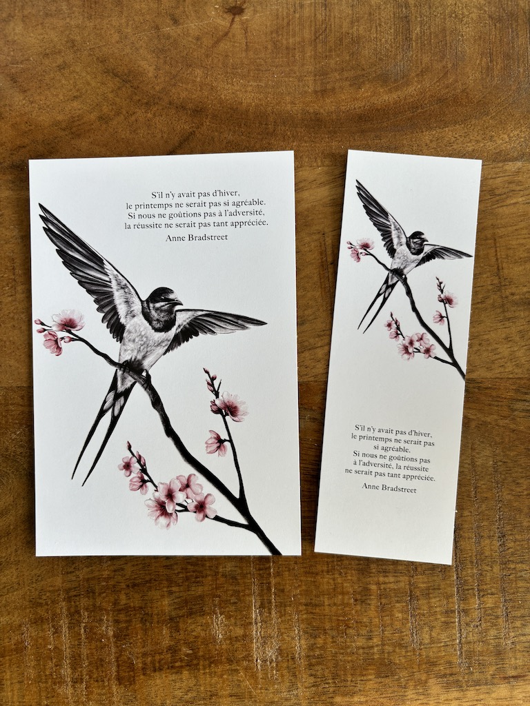 Cette affiche oiseau s’accompagne de la citation inspirante d’Anne Bradstreet :