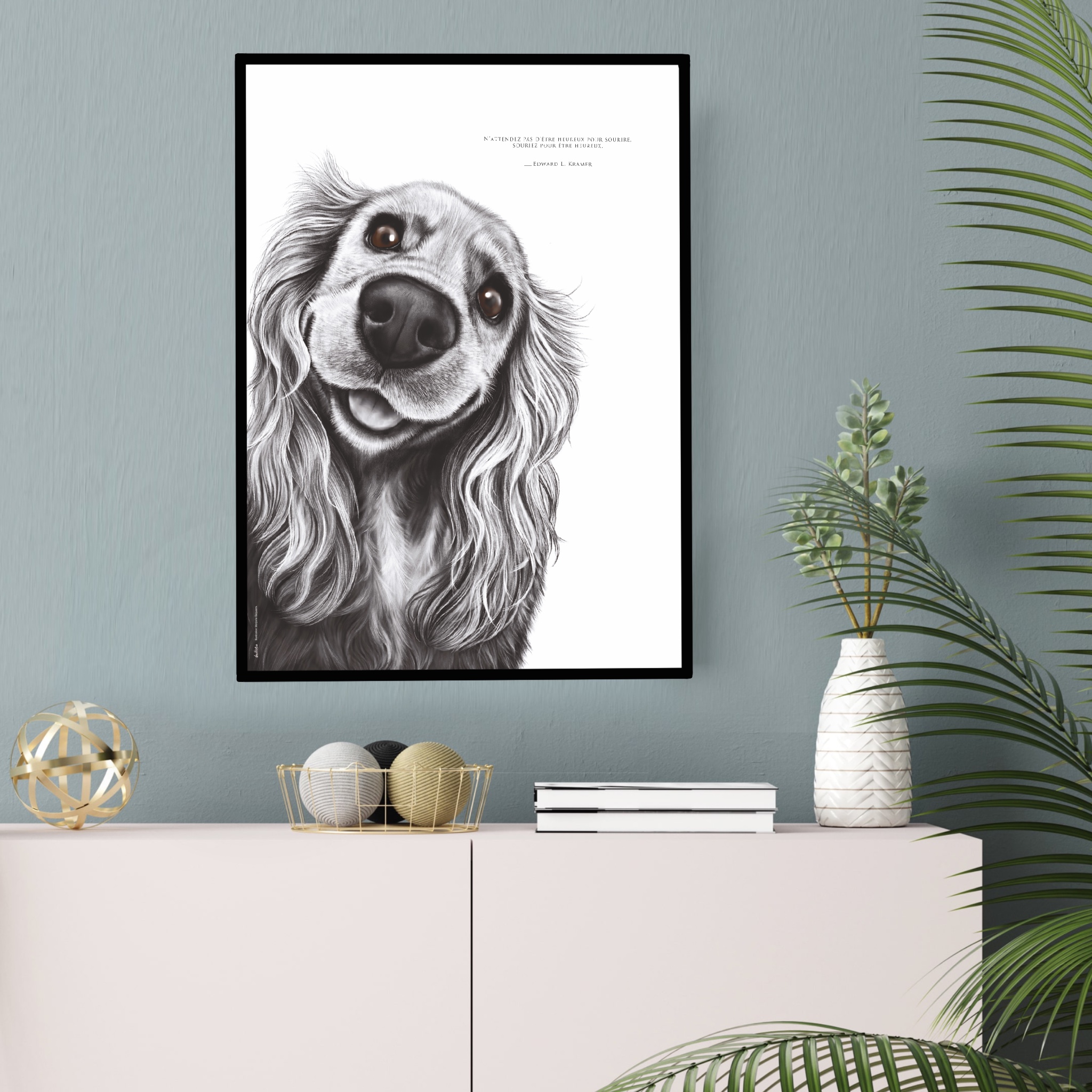 À l’image du cocker, qui partage naturellement sa bonne humeur, cette affiche d’un cocker nous invite à cultiver la joie dans les petits instants du quotidien.
